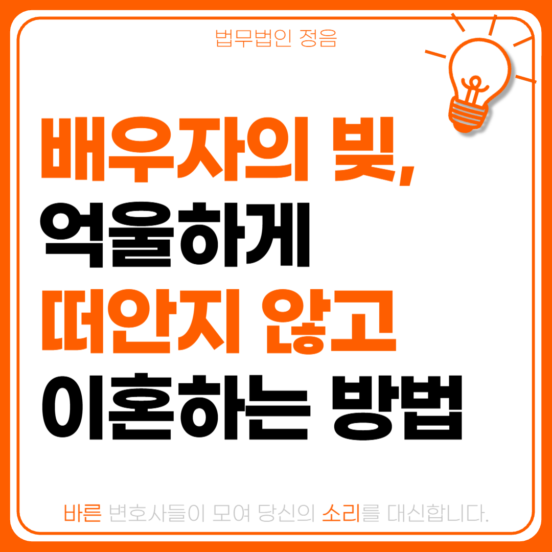 이혼은 새로운 출발을 위한 과정인데, 배우자의 잘못된 빚까지 떠안고 시작해서는 안 됩니다. 빚도 아는 만큼 방어할 수 있습니다.