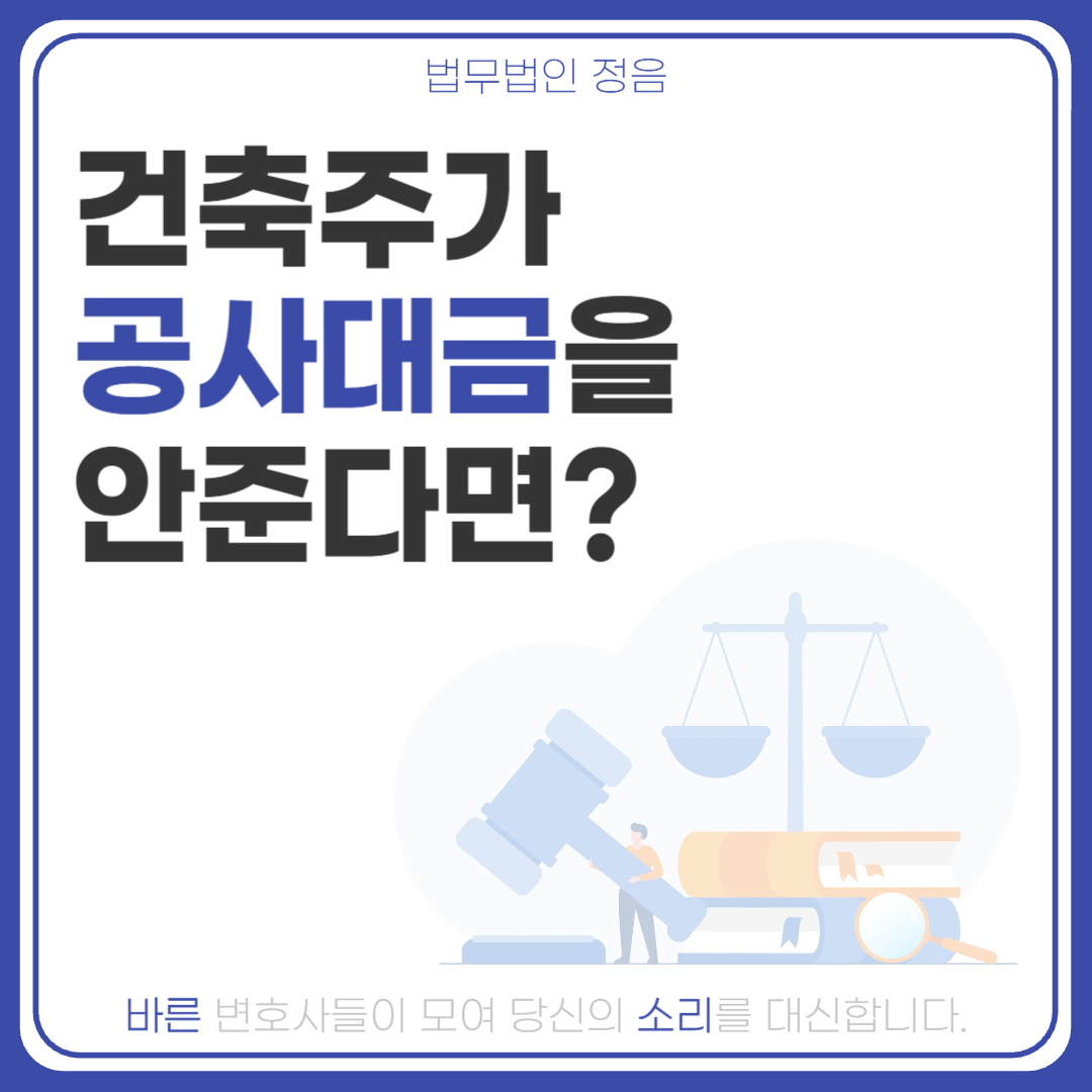 법무법인 정음은 다수의 공사대금 사건을 수행하며 축적된 노하우를 보유하고 있습니다. 대표님의 소중한 땀의 대가, 떼이지 않고 끝까지 받아낼 수 있도록 전략적으로 움직입니다.